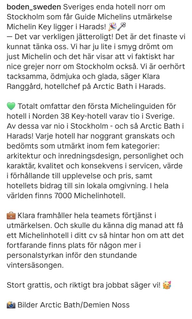 Stort GRATTIS!!! Det gläder mig att det finns en Michelinvärld utanför Stockholm också. Samtidigt måste jag medge att Michelin utmärkelsen till hotell var helt nytt för mig. Trodde att bara krogar fick stjärnor i Michelinguiden.