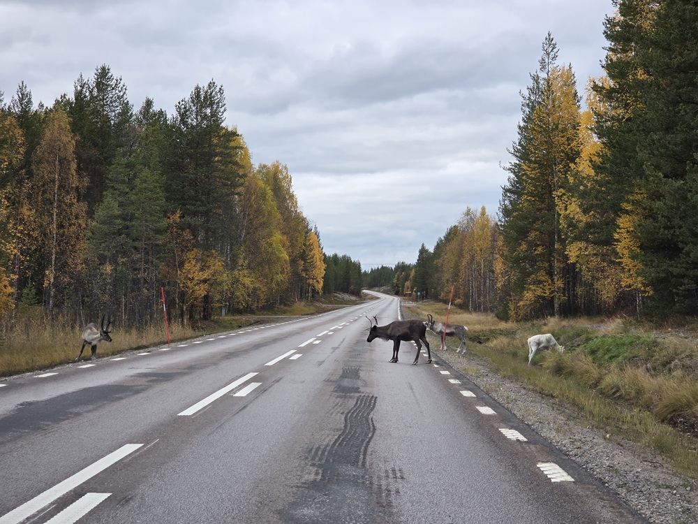 Att se renar i vägrenen är i högsta grad exotiskt för en nollåtta, så även för mig. Och det är inte varje dag att man ser en albinoren heller. Såg bromsspåren på vägbanan. Tänkte att det troligen var en långtradare som försökte bromsa för att inte köra på en ren där.