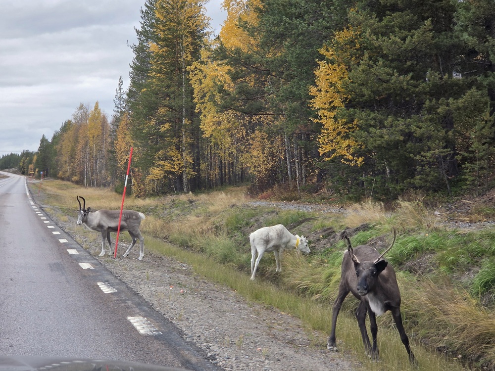 I veckan var vi till Arvidsjaur och på väg dit mötte vi renarna som uppehöll sig vid vägkanten, och som du ser så här hösten på gång här. Å, precis som hos Åke är snökäpparna utsatta. 🙂